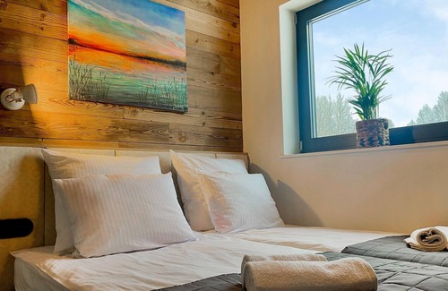 A sólo unos metros de la orilla del lago Pozezdrze, esta hermosa y luminosa casa de vacaciones le da la bienvenida. Seguro que usted y su familia han soñado con un alojamiento así. Con vistas al lago, en los meses fríos podrá relajarse en el salón con chimenea, tomar un cacao caliente y ver sus películas favoritas. Toda la casa está amueblada a un nivel muy alto y moderno. Además, encontrará su intimidad en los dormitorios y cuartos de baño, que son otros tantos.