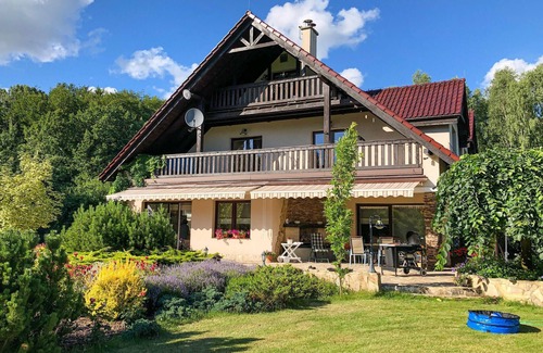 En una ubicación maravillosa, rodeada de un hermoso jardín y cerca del bosque, le espera esta casa de vacaciones sumamente confortable con espacio para la familia numerosa. El atractivo mobiliario con encanto neorústico crea un ambiente acogedor en las habitaciones. Disfrutad juntos de las comidas con vistas al exterior y luego poned de nuevo en marcha la circulación con una partida de billar. Al final de un día maravilloso, pónganse cómodos en la sala de estar y charlen hasta bien entrada la noche mientras las llamas crepitan suavemente en la chimenea.
