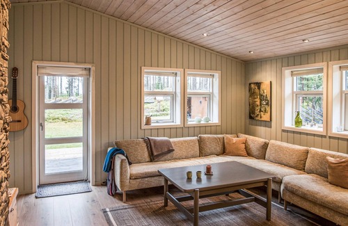 Disfrute de una estancia confortable en plena naturaleza. La amplia casa le ofrece a usted y a su familia espacio para relajarse después de días activos en el acogedor salón, frente a la chimenea y ver la película favorita de la familia después de una deliciosa cena.