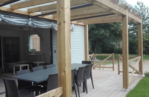 Hogar de 10 pers. (posible 2 pers +), ideal para 2 familias, estacionamiento y jardín (800 m²) privado amurallado, marco de madera de 50m ² que se abre a una gran terraza cubierta y sombreada con habitaciones y dormitorios en un edificio antiguo contiguo. Asegure las bicicletas en tierra disponible para los inquilinos.