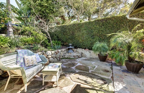 propiedad única se abre a una exuberante oferta de espacio al aire libre tanto en la vida privada y la intimidad. Exuberantes jardines en terrazas incluyen Weber parrilla al aire libre, un centro de cocina con fregadero y encimera de azulejos mexicanos para facilitar las comidas al aire libre. La ducha al aire libre se entrelaza con el jazmín, rosas de la herencia, y suculentas que han ido madurando durante más de 40 años. plantaciones elegantes con naranja, limón, pomelo, aguacate y chirimoyo en cascada de tres niveles por debajo de la casa.