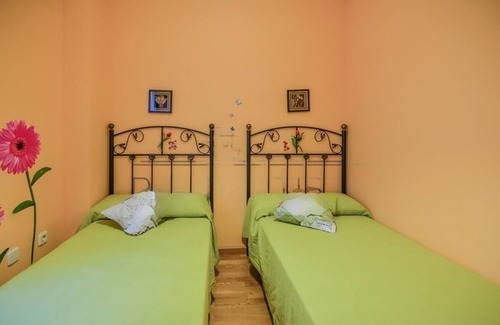 Alquilo este piso para estancias cortas/medias (2 días mínimo) semana santa, vacaciones, fines de semana o cualquier mes, quincena o semana del año. Totalmente amueblado y equipado (con ropa, menaje, TV, lavadora, frigorífico, microondas, horno, hervidor-Kettle, cafetera.. etc. Tiene 2 cuartos, el principal con cama doble queen-size y otro con 2 individuales, salón con 1 gran chaise-longue extensible y otro sofá-cama doble, con capacidad hasta 7-8 pers.