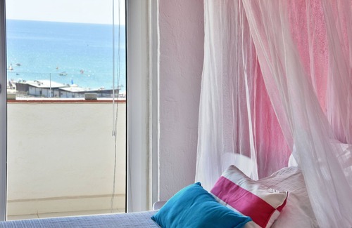 El apartamento tiene tres habitaciones con armarios, dos baños, una cocina muy bien equipada y una hermosa sala de estar con balcón con una espléndida vista al mar, donde puede comer si lo desea.
