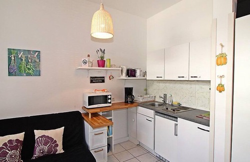 Apartamento de 2 estancias 40 m2 en el 2° piso. Con mobiliario de buen gusto y agradable: salón-dormitorio con 1 cama doble (180 cm), TV (pantalla plana). Cocina abierta (2 fogones, microondas, cafetera eléctrica) con mesa de comedor, 1 plegatín (140 cm), radio y CD. Ducha/WC. Calefacción. El alojamiento dispone de: plancha, secador de pelo. Internet (Wifi, gratis). A tener en cuenta: adecuado para familias. Apartamento para no fumadores.