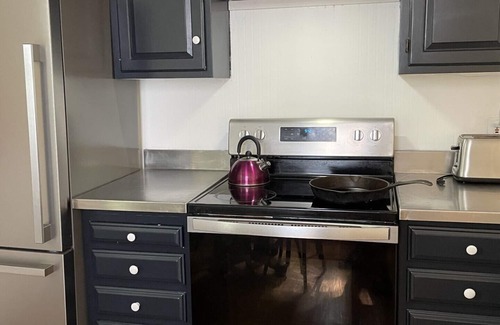Al instalarte en este alojamiento de 2 dormitorios y 1 baño, encontrarás una sala de estar, un comedor, una zona para barbacoas y caja fuerte. Conéctate al wifi gratis, o relájate frente a un Smart TV. El cuarto de baño incluye un secador de pelo, toallas y papel higiénico. Prepara una comida casera en la cocina, equipada con horno, placa de cocina y frigorífico, además de cafetera y tetera, hervidor eléctrico y microondas. Y como podrás aprovechar la lavadora y la secadora, no te hará falta llevar mucho equipaje. Otras comodidades incluyen ropa de cama, una tabla de planchar, aire acondicionado y calefacción.
