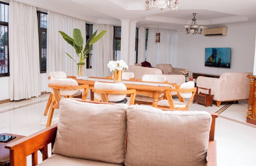 Disfrute de una estancia de lujo en este espacioso apartamento en Dar es Salaam, con impresionantes vistas de la ciudad, el océano y una piscina exterior compartida. Este apartamento es perfecto para viajeros que buscan comodidad y conveniencia. Con tres dormitorios y tres baños, puede alojar hasta [número] huéspedes. El apartamento cuenta con lavandería, sala de estar, comedor y zona común, lo que lo hace ideal para familias o grupos de amigos.