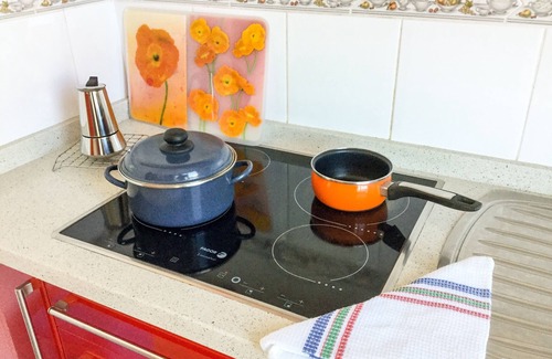 - una cocina totalmente equipada: placas vitróceramica, horno, microondas, nevera/congelador, tostadora, exprimidor, hervidor de agua y todas las vajillas para poder cocinar en perfecta comodidad.