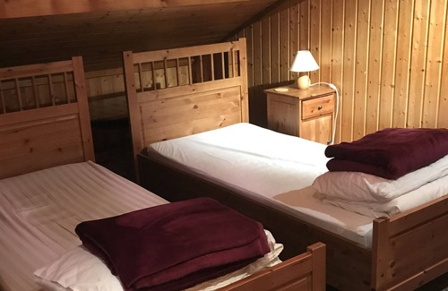 El Chalet consta de 5 habitaciones dobles que abarcan 3 plantas con capacidad para 10 personas en camas y cómodamente 2 más en un sofá cama en la sala de estar y / o el futón móvil en uno de los dormitorios, también hay una cuna de viaje si es necesario. Tres dormitorios están en el segundo piso, uno en el primero y uno en la planta baja.