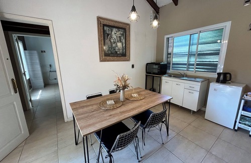 Este apartamento cuenta con una muy espaciosa habitación con cama doble, sommier de 2 plazas, tv smart, wifi y aire acondicionado. Contamos con comedor y cocina equipada para cocinar y un baño completo con bidet y ducha. El alojamiento tiene calefacción también. Posee cortinas de blackout y screen. Se ubica a tan solo 5 minutos del Estadio Aconcagua Arena, en una zona residencial tranquila y segura. Vías de transporte publico muy cerca.