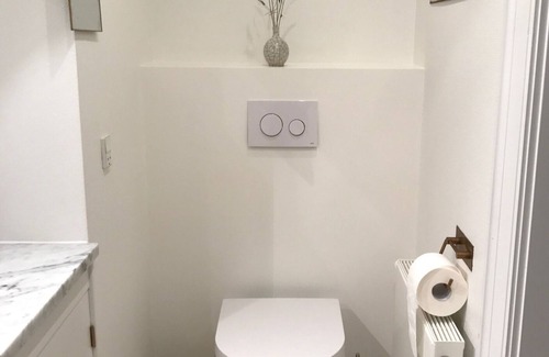 Hay dos habitaciones que tienen acceso directo (antesala) a un baño compartido que solo utilizan los huéspedes, con ducha y WC. Un aseo de invitados adicional se encuentra en el hall de entrada. Un amplio y cómodo salón con sofá, una secretaria y una mesa de comedor lo invita a quedarse. Los fabricantes de té, cafeteras, libros y juegos están disponibles para los huéspedes. Los invitados tienen su propia entrada. Las habitaciones de huéspedes se pueden usar individualmente o juntas (p. Ej. Familias, amigos) están reservados, entonces usted tiene toda el área para usted.