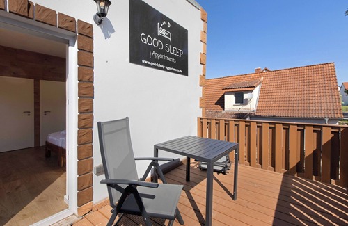 Este alquiler de vacaciones cuenta con un balcón privado para relajarse por la noche.
