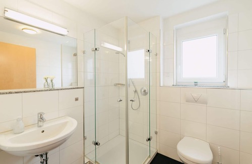 El apartamento de aproximadamente 28 metros cuadrados con capacidad para 2 personas. En el / zona de dormitorio de estar hay una cama doble, TV, reproductor de DVD, reproductor de CD con radio y una cocina totalmente equipada, zona de cocina morderne, pequeño comedor completa la gama. El moderno cuarto de baño tiene una ducha de cristal y aseo. Todo el apartamento dispone de calefacción por suelo radiante y persianas eléctricas. Una contratación para la mecánica no es posible. Siga este enlace para ver el apartamento en el vídeo: https: // www. youtube. com / watch?v = czTiCIliCX4