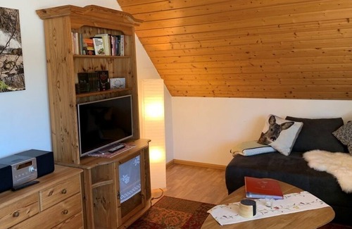Nuestra casa hospitalaria con cinco apartamentos se encuentran en las afueras de Kappel, un distrito de Lenzkirch - paseos preciosos de la bolsa de la casa. El gran jardín cerrado con tenis de mesa, cama elástica gigante, columpios, piscina de arena y una parrilla de gas está disponible. parada de autobús delante de la puerta. Kappel en Lenzkirch es un Schwarzwalddorf pequeña y tranquila 870 m de altura. La ubicación central También son iguales a pie en uno de los Gaststatten, en la piscina Kappler y remonte de esquí. El cross-country de esquí y rutas de senderismo comienzan justo afuera de su puerta principal. El autobús es gratuito para los clientes y se detiene justo al lado de la casa de campo. Mirar hacia adelante a días sin preocupaciones en nuestra casa de huéspedes Hundelbach - perro feliz.