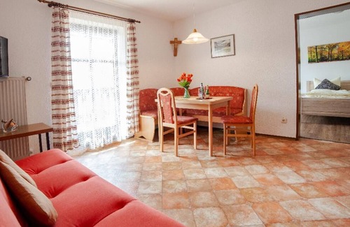 Casa de campo para sentirse bien. En una ubicación muy tranquila, pero céntrica, rodeada por el hermoso paisaje natural de Bayr. Waldes, justo al lado del Parque Nacional Bayr. Bosque con la ruta más larga de árboles en el mundo. Nuestra granja de vacaciones se encuentra en St. Oswald, uno de los lugares más bellos del Bayr. Bosque. La ubicación tranquila y soleada del lugar, la interacción de la naturaleza, el arte y la cultura, así como la excelente calidad del aire y del agua le dan al lugar un encanto único. Para los niños, ofrecemos paseos a caballo en caballos Haflinger, paseo en tractor, gran granero para jugar, parque infantil, Kleinkinderfuhrpark y equipo, tenis de mesa, mucho espacio para jugar en la granja, piscina y mucho más. Descubra una de las zonas de senderismo con más encanto de Europa Central, que ofrece un variado programa de vacaciones durante todas las estaciones. Área de deportes de invierno de nieve confiable. El hermoso y espacioso apartamento (75 m²) ofrece suficiente espacio para hasta 5 personas. Hay un dormitorio con una cama doble y un dormitorio con una cama doble y una individual. También encontrará una acogedora sala de estar con una gran cocina, un comedor y un sofá TV. El apartamento también tiene un baño con ducha y WC.