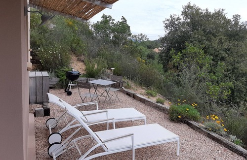 1 dormitorio, 1 aseo, 1 cocina equipada, 1 salón, 1 terraza cubierta con muebles de jardín, 1 terraza descubierta con zona de barbacoa y tumbonas.