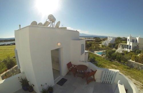 Cuenta con 3 terrazas, 2 frente al mar, con vistas a Paros, Ios y la puesta de sol. La terraza más grande tiene una pérgola a prueba de lluvia.