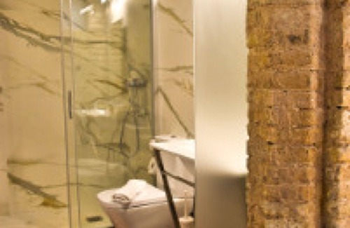 El dormitorio tiene una cama de 150 cm y cuenta con un amplio cuarto de baño con ducha separado mediante un pilar del siglo XVI descubierto en la intervención arqueológica.