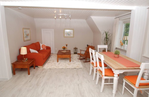 Soleado apartamento en el 2do. Planta superior con equipamiento completo y vista al canal de Kiel. Desde el apartamento hay 200 m hasta el canal, a poca distancia a pie de Imland-Klinik y 800 m, 0,9 km hasta la ciudad.