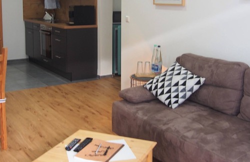 Nuestro apartamento de 2 habitaciones muy bien equipado en la planta baja de una casa multifamiliar moderna se encuentra en una zona tranquila en Bitz, en el corazón de la Jura de Suabia. El apartamento tiene un salón comedor con cocina americana, dormitorio con cama doble grande (colchones extra altos), baño con ducha de efecto lluvia y aseo separado. El sofá cama en la sala de estar puede acomodar a 2 personas adicionales si es necesario (área para dormir 140 x 200).