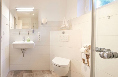 Una plaza de aparcamiento se encuentra directamente en la casa, que se encuentra en una antigua granja. Hay un montón de espacio para jugar y retozar, relajarse y descansar. Aquí también tenemos un PLAY BAR con trampolín, tenis de mesa, futbolín y un pequeño muro de escalada. Además, ofrece varios vehículos pequeños (Bobbycar, go cart, scooter, etc.). Puede guardar sus bicicletas en una sala común, y también hay una lavadora y secadora disponibles para nuestros huéspedes. Un bote de remos y una canoa están disponibles de forma gratuita. Se pueden alquilar dos tablas de SUP por una pequeña tarifa. A petición, le ofrecemos una silla alta y una cuna de viaje de forma gratuita.
