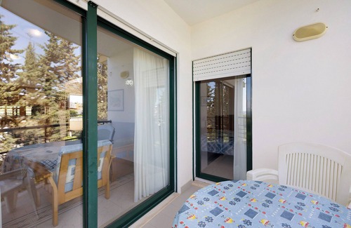 El apartamento vacacional también tiene un balcón privado, perfecto para relajarte por la noche.