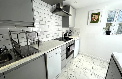 Este alojamiento de 1 dormitorio y 1 baño cuenta con una sala de estar, un sofá cama y escritorio. Disfruta del wifi gratis y de la televisión por satélite o cable. El cuarto de baño incluye un secador de pelo y toallas. La cocina está equipada con horno, frigorífico y lavavajillas, además de cafetera y tetera, microondas y utensilios de cocina. Otras comodidades incluyen ropa de cama, una tabla de planchar, calefacción y una mesa de comedor.