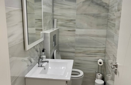Apartamento completo de 175 mts con 3 habitaciónes individuales con baño privado completo en cada una de ellas. Más un baño de servicio. Cuenta con secador de pelo.