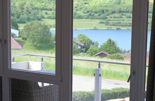 Apartamento Seeidyll en el Maarberg Resort: elegante apartamento completamente amueblado para 2 a 4 personas. aproximadamente 48 metros cuadrados de espacio habitable, balcón con dirección al lago y estanque ornamental. El apartamento Seeidyll se encuentra en el piso medio, a nivel del suelo a la entrada y ofrece desde el apartamento y el balcón una magnífica vista del lago, el hermoso paisaje y el estanque bien cuidado. Siéntese en el apartamento o en el balcón y déjese encantar por la vista. En la hermosa sala de estar, encontrará un nuevo juego de sofás con función de cama y un televisor grande HD / 3D de 127 cm de nueva generación. Usted tiene la opción de elegir entre 3,000 estaciones de TV y radio diferentes en muchos idiomas de 4 satélites diferentes. También hay un reproductor 3D Blueray y un reproductor de DVD. También un sistema de música con radio, CD, etc. se encuentra en el apartamento. Hay un acceso a internet con WIFI (WiFi). El luminoso y acogedor apartamento amueblado transmite un toque relacionado con la naturaleza con mucha madera y piedra. Además, la chimenea eléctrica y un elegante ventilador de techo extienden un ambiente especial y acogedor. Por lo tanto, obtienes un ambiente especial de vacaciones incluso en días fríos y húmedos. Es un apartamento para no fumadores (fumador, utilice el balcón o el área al aire libre). La nueva cocina equipada tiene una estufa de 4 placas (vitrocerámica) y horno, lavavajillas, frigorífico, microondas, 2 cafeteras (máquina de filtro y almohadilla, Bosch Tassimo). Tostadora, tetera, etc. Por supuesto, hay ollas y sartenes, así como cubiertos y vajilla para el mayor número posible de personas. Una cuna y silla alta se pueden proporcionar de forma gratuita. El comedor es apto para 4 personas. El apartamento tiene un dormitorio separado con una cama con somier de alta calidad (180 cm x 200 cm). Así que nada se interpone en el camino de una buena noche de sueño. Encontrará en el dormitorio espejo grande de cuerpo entero. El sal����n tiene un nuevo sofá cama doble como espacio adicional para dormir. Mímese en la ducha de vapor con terapia de luz, chorros de masaje para cuerpo y pies, ducha de lluvia y muchas otras funciones. También se integra una radio. En todo el baño, los LED azules del piso luminoso proporcionan un gran ambiente. Un espejo grande e iluminado, un secador de cabello y una báscula personal están disponibles. Calefacción moderna con calentador de toallas. El apartamento tiene un bonito balcón con 4 sillones y un cóctel o mesa de café. Si desea comer buena comida en el balcón, encontrará otra mesa de comedor como una mesa plegable para llevar en cada piso. El apartamento tiene calefacción central y, por supuesto, una entrada independiente.