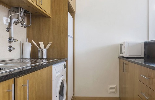 Cuenta con una moderna cocina abierta, con nevera, TV, vitrocerámica, microondas, cafetera, entre otras comodidades, para que su estancia sea lo más cómoda posible.