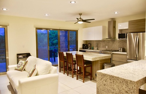marca muy bien amueblado condominio nuevo con cocina totalmente equipada, TV, Internet. Cama king size en el dormitorio principal con baño privado, cama queen size en el dormitorio secundario con baño privado, sofá cama en la sala de estar con medio baño Esta propiedad ofrece WiFi gratuita, caja fuerte, TV por cable, estancia cómoda, como en Casa propia a precio muy asequible. Hermoso y pequeño desarrollo en la tranquila zona residencial al norte de Playa del Carmen con piscina, barbacoa, estacionamiento, acceso seguro, seguridad las 24 horas, a 10 minutos a pie de la playa privada. Condominio de 2 recamaras 2 1/2 baños con amplios balcones.