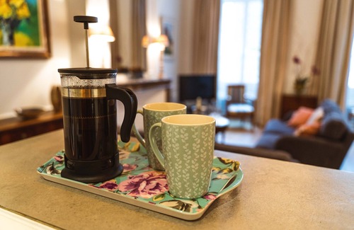 Totalmente autónomo e independiente, el apartamento tiene un gran salón / comedor con techos altos, cocina moderna totalmente equipada y 2 dormitorios, uno con cama de matrimonio y el otro con dos camas individuales, cada uno con su propio cuarto de baño con ducha. Todo está preparado listo para su llegada - camas están hechas y mullidas toallas blancas y artículos de tocador.