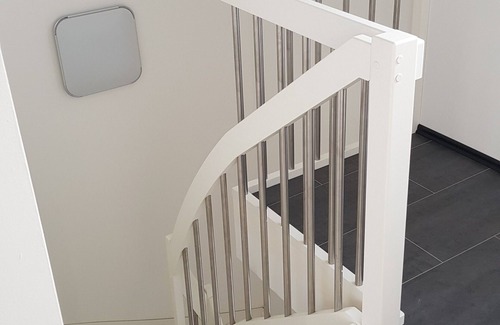 Nuestro alojamiento es una casa adosada de nueva construcción (200m² de superficie habitable). En el piso inferior (cerrado) hay un espacio de oficina, el resto: se puede utilizar la cocina de abajo y 90 m² de espacio habitable en el piso superior.