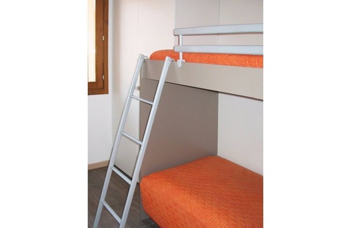 Nuestro apartamento de tres habitaciones tiene una sala de estar con cocina americana y sofá cama, 1 habitación doble, 1 habitación con dos camas individuales, baño, amplia terraza de estar. hasta un máximo de 6 personas, finamente amuebladas y equipadas, aire acondicionado regulable y la cocina está completa con electrodomésticos de alta calidad que incluyen refrigerador, congelador, horno eléctrico, placa de inducción, lavavajillas, platos, ollas, platos ... Utensilios de limpieza. Es posible alquilar ropa de cama y toallas y a su disposición 2 camas o tumbonas para la piscina y el solárium.