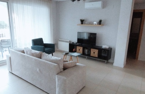 Está bien amueblado y totalmente equipado con: aire acondicionado, calefacción central, televisión por cable con canales en inglés, internet wifi gratuito, tumbonas, toallas y ropa de cama.