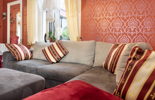 El acogedor apartamento de vacaciones Orchidee de 90 m² en la casa de huéspedes Flair se encuentra en Stockach, en el lago Constanza, y tiene capacidad para 6 personas. En el jardín de invierno y en el dormitorio hay 2 camas dobles extra anchas, otras 2 camas individuales están disponibles en la sala de estar y en la sala de la chimenea. Otras habitaciones incluyen una sala de estar con zona de estar y una cocina excelentemente equipada con una mesa de comedor, un lavavajillas, una máquina de café incl. café, hervidor de agua, tostadora, microondas, cortador de pan, serpentina de soda, nevera / congelador, así como un horno y una estufa. En el cuarto de baño, los huéspedes tienen acceso a una ducha de aventura con manguera de ducha Kneipp / terapia de luz. También hay una sauna de infrarrojos y un gimnasio con equipamiento. Los servicios adicionales incluyen una lavadora y una secadora en el sótano y una plancha y caja fuerte. El apartamento de vacaciones adecuado para niños ofrece una cuna, una trona (las 3 bajo petición), juguetes y libros infantiles para los huéspedes más pequeños. También se ofrece entretenimiento. Hay televisión por cable y por satélite, reproductor de DVD y CD y Wi-Fi de alta velocidad. El balcón y el jardín compartido con mobiliario de jardín y sombrilla, parque infantil y barbacoa invitan a pasar agradables momentos al aire libre con toda la familia. La casa de vacaciones Flair goza de una ubicación céntrica en una calle lateral muy tranquila de Stockach y está cerca del parque de la ciudad (200 m). El centro de la ciudad (500 m) está a sólo unos minutos a pie. Allí encontrará todas las facilidades para sus necesidades diarias: supermercado, farmacia, banco, restaurantes y cafés. Stockach es conocida por el tribunal "Narrengericht" y el festival de la ciudad de Stockach "Schweizer Feiertag" (fiesta suiza). También se la llama "La puerta del lago de Constanza", porque la orilla noroeste del lago de Constanza está a sólo 6 km (8 minutos en coche). Desde el punto de vista paisajístico, Stockach está bellamente enclavada en el triángulo fronterizo de Alemania, Austria y Suiza. La diversidad de este paisaje natural único ofrece grandes lagos, extensos bosques, idílicos paisajes de colinas y encantadoras montañas.