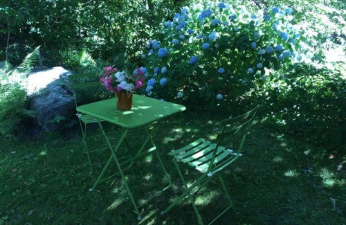 Los castaños centenarios dan un ambiente especial al hermoso jardín con varias zonas para sentarse. Los estudios son muy personalizados y están amueblados con gusto y con un alto nivel de calidad. Cocina americana con dos placas vitrocerámicas, frigorífico y todo lo necesario para cocinar durante las vacaciones. En caso de ocupación individual, la segunda cama puede colocarse debajo para ahorrar espacio. La calefacción Redwell puede ajustarse a la temperatura deseada mediante un termostato. El cuarto de ducha/WC separado también tiene una ventana abatible doble. Los huéspedes altos aprecian la habitación, que está abierta hasta el tejado de piedra y da "sensación de casa". Los huéspedes se sienten como en casa.