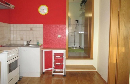 Piso de instaladores o de vacaciones, aprox. 45,2 m², planta baja, acceso a nivel del suelo, el piso da a la calle. Hall armario en el salón (27 m²), lámpara de pie, 1 cama doble (2 x 2 m), rincón sofá, mesita baja, cómoda, 1 sillón, TV y radio en el salón, armario, 2 aparadores, 2 mesitas con lámparas de noche, pared de libros, cocina equipada (11,7 m²) con mesa de comedor, 2 sillas, frigorífico, congelador, tostadora, cafetera, hervidor de agua, cocina eléctrica de 4 placas con horno, microondas, 2 escalones para acceder al cuarto de baño (6,5 m²) con ducha y WC, secador de pelo, armario con espejo, no fumadores, WiFi, plaza de aparcamiento en el aprox.1500 m² de terreno cerrado (sin vistas al exterior). El propietario vive en la casa. Acceso al piso por el patio cerrado, entrada compartida con el propietario. Posibilidad de guardar bicicletas, zona rural, tranquila, a 1,5 km: 1 parque deportivo con sauna, tenis (sólo al aire libre), 2 gasolineras, 4 supermercados, 4 restaurantes, 3 panaderías, 2 carnicerías, a unos 6,5 km del centro de la ciudad, parada de autobús a unos 2 min a pie, a la piscina a unos 2 min a pie, al bosque a unos 2 min a pie, a unos 4 km: estadio y piscina deportiva.