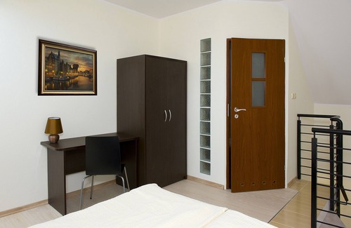 El apartamento tiene sala de estar con comedor y cocina en la planta baja y un dormitorio, baño en el primer piso. El apartamento tiene terraza común con vista al jardín. En la oferta puede encontrar una cocina totalmente equipada (cocina eléctrica, horno microondas, ollas, vidrio). El salón tiene un sofá cama para dormir, y en el dormitorio hay cama doble. Ideal para familias con niños mayores de hasta 16 años o grupo de amigos.