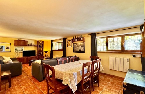 Este encantador apartamento en una acogedora casa de campo, situado en la pintoresca localidad de Galapagar, ofrece el refugio perfecto para familias que buscan unas vacaciones relajantes. Con acceso directo a una piscina compartida, podrá disfrutar de días soleados junto al agua, mientras que el hermoso entorno natural proporciona un ambiente sereno para relajarse. El apartamento está convenientemente ubicado cerca de una variedad de atracciones. Explore el encantador pueblo de Galapagar o conduzca un corto trayecto hasta la cercana Madrid, a solo 30 minutos, donde podrá descubrir una rica historia, cultura y tiendas. Los entusiastas del aire libre también pueden disfrutar de senderismo, ciclismo y paseos por la naturaleza en el cercano Parque Nacional de la Sierra de Guadarrama. El apartamento cuenta con una entrada acogedora que conduce a una cocina bien equipada, a la que también se puede acceder desde el exterior para entrar fácilmente después de un día en la piscina. La sala de estar y el comedor de planta abierta ofrecen un espacio cómodo para relajarse y disfrutar de las comidas juntos. El apartamento incluye un acogedor dormitorio, un baño y una instalación de calefacción para garantizar la comodidad durante todo el año. Para una mayor relajación, disfrute del baño de burbujas interior y la sauna, disponibles por una pequeña tarifa adicional. El jardín compartido es perfecto para relajarse al aire libre, completo con puertas y muebles donde podrá disfrutar del entorno tranquilo.