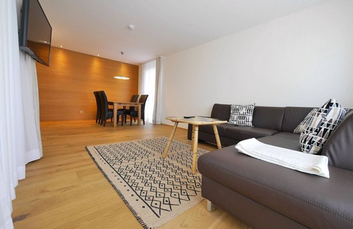 Ahora le ofrecemos un apartamento vacacional de alta calidad con 3.5 habitaciones (83m2 de espacio habitable), logia y un balcón para sus vacaciones en la nueva residencia para estancias de 3 días o más. El apartamento puede alojar hasta 4 personas, con camas supletorias de hasta 5 personas. Toda la casa está libre de umbral, accesible para discapacitados y construida con materiales de alta calidad.