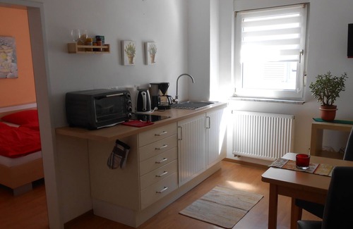 Nuestro apartamento con 20 m2 de espacio habitable en una calle tranquila del casco antiguo tiene capacidad para 2-3 personas. La acogedora sala de estar con TV vía satélite le invita a quedarse. La cocina independiente con cafetera, hervidor, 2 placas eléctricas, refrigerador, utensilios de cocina y zona de estar integrada y TV vía satélite no deja nada que desear. El apartamento tiene un dormitorio con cama doble. El cuarto de baño separado con ducha, inodoro y secador de pelo completa el panorama general. Solo se admiten mascotas bajo petición. La conexión Wi-Fi es gratuita. Este apartamento también puede ser utilizado como una habitación doble. El desayuno se puede tomar en la panadería a la vuelta de la esquina.