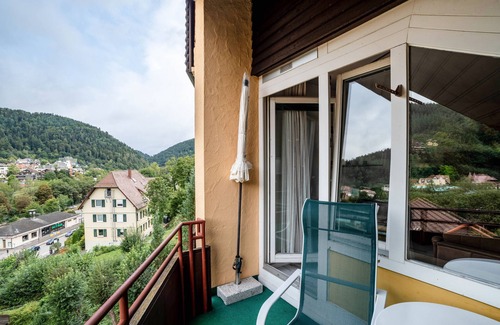 El balcón está cubierto y ofrece vistas al valle de Nagold.