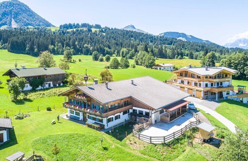 Bienvenido a la granja orgánica Mittermoos Un paraíso para toda la familia Le invitamos a pasar los mejores días del año en uno de nuestros apartamentos amueblados con buen gusto (para 1 a 13 personas) en el corazón de los Alpes de Kitzbühel. Todos los apartamentos disponen de balcón / terraza (muebles de jardín, tumbonas, barbacoa) con vistas a las montañas, cocina totalmente equipada con zona de comedor, TV de pantalla plana con canales vía satélite, conexión gratuita a internet con cable y baño con ducha y WC, secador de pelo, espejo cosmético y jabón. , Ubicación: Altitud: 800 m. Nuestra granja está a unos 1,5 km del centro, muy tranquila, justo en la pista de esquí de fondo y trineo. La estación de esquí de Fieberbrunn está a unos 8 minutos en coche. Vacaciones en la granja: premiado con 4 flores Categoría de propietarios de habitaciones privadas: 4 miembros de Edelweiss en Family Tirol - alojamiento familiar certificado, características típicas de la granja: Tenemos muchas sorpresas para nuestros pequeños huéspedes en nuestra granja. Ovejas, conejos, patos, pollos, gatos, abejas y vacas con sus terneros. Conocer y alimentar a nuestros animales en la granja es una experiencia para los niños. Las laderas circundantes justo al lado de la casa te invitan a hacer bobsleigh y snowball en invierno. En nuestra granja orgánica, puede comprar huevos de granja, miel y productos cárnicos de temporada. Entrada gratuita (uso sin restricciones según Horario de apertura) en el Fieberbrunner Aubad con sauna pueblo, en la temporada de invierno!¡Internet en todos los apartamentos gratis!Desplácese por las páginas de nuestra página de inicio y disfrute de la anticipación de unas excelentes vacaciones con nosotros.