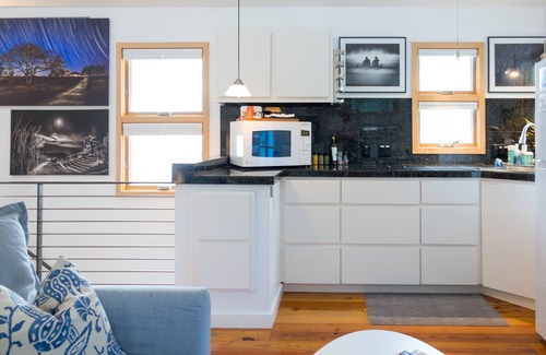 Ubicado al norte de la Universidad de Texas, este moderno estudio muestra cómo la construcción ecológica puede coexistir con un edificio histórico, la Casa Fruth. Diseñado como una galería de fotografía, uso creativo del espacio logra una sensación de amplitud. Completado en febrero de 2012, incorpora conceptos "edificio verde": las luces LED, paneles solares, calefacción / aire acondicionado y calefacción eficiente de agua sin tanque. Una cama tamaño queen Murphy, cocina totalmente equipada y muebles cómodos en un piso de madera recuperada centenaria ofrecen a los visitantes una base de operaciones para explorar Austin. Aproximadamente 450 sq. Ft. De espacio de aire acondicionado, además de un 70 sq. Ft balcón con sillas y mesa. Centralmente ubicado, los huéspedes pueden coger el autobús UT (75 yardas), o caminar a UT (1 milla), el Mercado Central, y restaurantes de la zona a lo largo del "Drag" (Guadalupe) y en Hyde Park; estamos cerca de varios hospitales (Austin Corazón, Seton, St. David de la Universidad Médica / Brackenridge, y Dell Children 's) y el Capitolio. Estudiosos UT, los visitantes, los amantes del deporte, deportistas (especialmente los remeros!) y los aficionados -todos música en vivo son bienvenidos a disfrutar de nuestro Gallery House.