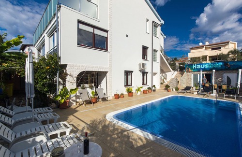 Las mejores tarifas para Krk apartamento comienzan desde $139 por noche con incluye Vista al océano, Ropa de cama/Ropa de cama, Lavandería, Mascota amigable, Area designada para fumar, Balcón/Terraza, Internet, Frente al mar, Barbacoa/Cocina al aire libre, Niño amigable, Cocina, TV, Instalaciones de bienestar, Chimenea/Calefacción, Aire acondicionado, Estacionamiento, Piscina, Vista con todas las demás instalaciones. Alojamiento combina a cada viajero con su Alojamiento perfecto, ya sea que viaje con un grupo, amigos, familia o mascotas.