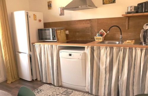 A su disposición, sala de estar con sofá cama, dormitorio independiente, cocina equipada (placa de inducción, horno microondas y grill, lavavajillas, lavadora, frigorífico y todo lo que necesita para cocinar. Cuarto de baño y WC.
