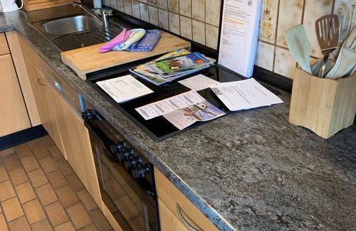 La cocina está totalmente equipada con horno, vitrocerámica de 4 fuegos, cafetera, tetera, tostadora, microondas, lavavajillas, batidora y muchas cosas más a las que está acostumbrado desde su hogar.
