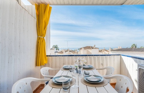 Con vistas al mar Mediterráneo, el apartamento vacacional Playa Varadero en Santa Pola es perfecto para unas vacaciones relajantes. La propiedad de dos plantas consta de una sala de estar, una cocina bien equipada, dos dormitorios y dos baños, por lo que puede acomodar hasta 6 personas. Los servicios adicionales incluyen Wi-Fi de alta velocidad (apto para videollamadas), televisión, aire acondicionado y lavadora.