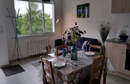 Los arándanos le dan a este apartamento de 42 m² tonos matizados de añil, turquesa o azul. Tiene un sofá convertible, su capacidad es de cuatro personas. Este apartamento está en el primer piso y se accede por una escalera exterior compartida.