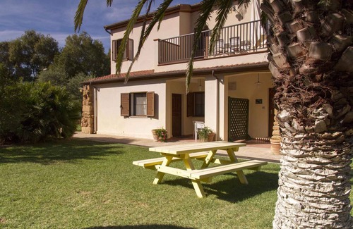 Apartamento vacacional con aire acondicionado Su alojamiento turísticoEl apartamento vacacional está rodeada por un abierto, cerrado terreno de jardín con prado y árboles. El propietario no vive en la casa o en la propiedad. Para uso a su disposición: terraza, parque infantil, columpio, césped, sombrilla, tumbona, barbacoa, zona de hogueras y patio. Piscina exterior para el uso común (6 m x 12 m, 2,60 m de profundidad). La instalación de la piscina esta operativa desde principios de abril hasta finales de octubre. Su apartamento turístico1 planta, 3 habitaciones (de los cuales 2 dormitorios), 50 m², 5 personas. Aire acondicionado. Entrada por 5 escalónes y una escalera exterior. Salón con rincón para sentarse, zona comedor (6 plazas), televisión y (muebles de jardín, 1 mesa, 4 sillas, sombrilla). Dormitorio con 1 cama doble, caja fuerte y (1 mesa, 4 sillas). Dormitorio con 2 camas individuales y 1 cama adicional en sofá-cama (solamente apto para niños). Rincón cocina en el salón con zona comedor (6 plazas), televisión, cocina de gas (3 fuegos), cocina eléctrica cocina de inducción, horno, campana extractora de humos, nevera (congelador) y lavadora. Baño con ducha, 1 lavabo, inodoro, bidé, secador de pelo y lavadora.Otras instalaciones: acceso de internet (WLAN), plancha, lavadora, juguetes, cuna y trona. Recepción televisiva vía satélite. Animal domésticopermitido, EUR 15.00/Animal doméstico y día. UbicaciónAlghero. El apartamento vacacional rústico y en estilo típico de la región (en el año 2005 renovado) se encuentra cerca del bosque y en una tranquila, una soleada y aislada ubicación. Vista de la propiedad sobre los bosques. El acceso se realiza por una calle secundaria o directamente por la calle principal (asfaltado). Aparcamiento en la propiedad. Compras 3 km, restaurante 100 m, centro de la localidad 14 km. Alguer: estación de tren 11 km y aeropuerto 9 km. banco en Fertilia 6 km. En el veranoRada de Alguer 7 km en Alguer (playa 7 km en Alguer con arena). Condiciones y preciosEn el precio incluidopiscina exterior, acceso de internet, aire acondicionado, estacionamiento, limpieza final, tumbonas, toallas (equipamiento inicial), WLAN acceso de internet. Costes adicionales-Costes en el lugar/destino:/Obligatorio:gastos adicionales globales para agua, electricidad, gas 160 € por objeto/alojamiento por semana. póliza de turismo según la tarifa del lugar (que recoge).A petición:toalla de baño 5 € por persona por cambio.Fianza:300 Euro